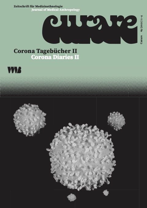 Curare Archiv (neu) (Kurzer Text, der die Verbindung zu curarejournal.org vorstellt.) (Die Jahrgänge bis 2018 sind zum Journal verlinkt, ältere zu Evifa.) Curare 47 (2024) 1+2Gender and Medicine Curare 46 (2023) 2Ambivalences of Healing. Cooperations in Biomedical Settings Curare 46 (2023) 1Visual Expressions of Health, Illness and Healing Curare 45 (2022) 2Beginnings and Ends of Life. Ethnographic Explorations and –Methodological Reflections Curare 45 (2022) 1Computer and Medicine Curare 44 (2021) 1+4Corona Diaries II Curare 43 (2020) 1+4Corona Diaries I Curare 42 (2019) 3+4Aesthetics of Healing. Working with the Senses in Therapeutic Contexts Curare 42 (2019) 1+2Kinship, Care, Technologies. Medicalized Relationships in Everyday Life Curare 41 (2018) 3+4Grenzgänge zwischen Ethnologie, Medizin und Psychologie Für Ekkehard Schröder zum 75. Geburtstag Curare 41 (2018) 1+2Healing Cooperations. Heterogenous Collaborations Beyond Dyadic Interactions